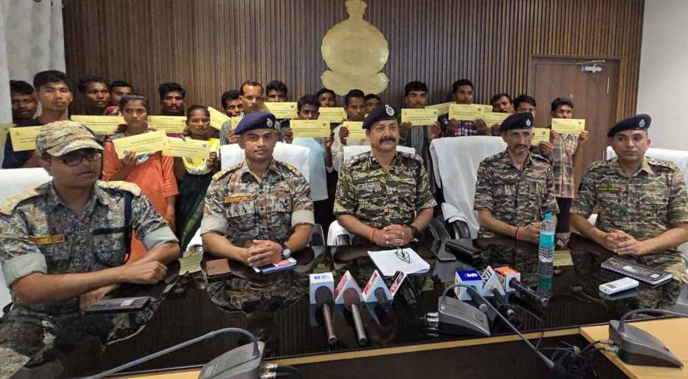 सभी नक्सलियों ने बीजापुर के पुलिस अधीक्षक डॉ. जितेंद्र यादव, अतिरिक्त पुलिस अधीक्षक यूलेण्डन यार्क, डीएसपी शरद जायसवाल और उप पुलिस अधीक्षक विनीत साहू सहित अन्य अधिकारियों के समक्ष आत्मसमर्पण किया. आत्मसमर्पण करने वाले सभी माओवादियों को 25-25 हजार रुपये की नगद राशि प्रदान की गई है.