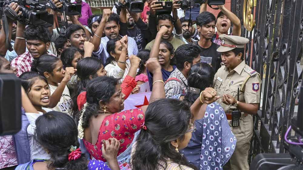 तमिलनाडु की राजधानी चेन्नई में अन्ना यूनिवर्सिटी परिसर में एक छात्रा के साथ हुए बलात्कार का मामला तूल पकड़ता जा रहा है। एआईएडीएमके की महिला विंग ने शनिवार को अन्ना विश्वविद्यालय इसे लेकर विरोध प्रदर्शन किया। इस दौरान उन्होंने पीड़िता के लिए इंसाफ की मांग की। दरअसल, एआईएडीएमके की महिला विंग ने शनिवार को चेन्नई के सैदापेट में विरोध प्रदर्शन किया। प्रदर्शनकारियों ने तमिल साहित्य के एक महान कैरेक्टर कन्नगी की पोशाक को भी पहन रखा था। इस विरोध प्रदर्शन में पार्टी की कई महिला नेताओं और कार्यकर्ताओं ने हिस्सा लिया और उन्होंने दोषी के खिलाफ कड़ी कार्रवाई की मांग की।