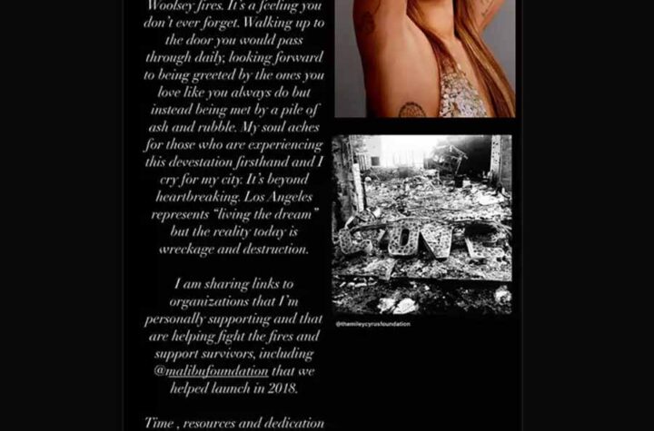 लॉस एंजेलिस एक्ट्रेस और सिंगर माइली साइरस ने लॉस एंजेलिस में लगी भीषण आग के बीच एक इमोशनल पोस्ट शेयर...