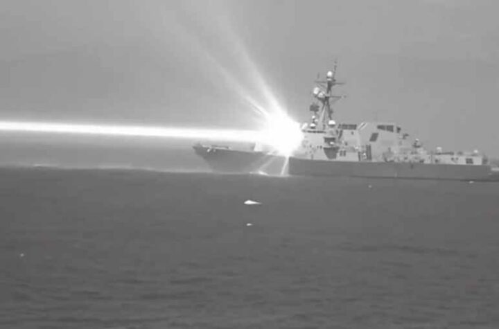 न्यूयॉर्क अमेरिका ने क्लासीफाइड तस्वीर जारी कर अपने युद्धपोत से ड्रोन को नष्ट करने वाले लेजर को फायर करते दिखाया...