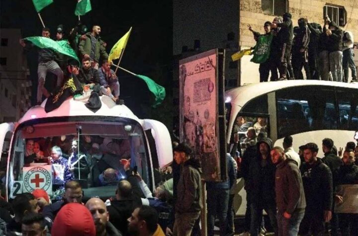 तेल अवीव इजरायल की कैद से छूटे 90 फिलिस्तीनी बंधक जब गाजा पहुंचे तो वहां बड़ी संख्या में लोगों ने...