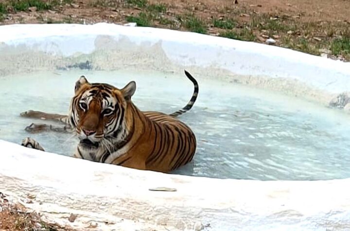 भोपाल वन विहार राष्ट्रीय उद्यान में वन्यप्राणियों को गर्मी से राहत देने के लिये हाउसिंग में रखे गये मांसाहारी वन्यप्राणियों...