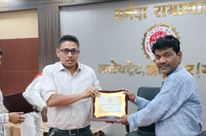 अनूपपुर कलेक्टर श्री हर्षल पंचोली द्वारा पत्रकार डल्लू कुमार सोनी को स्मृति चिन्ह भेंट किया