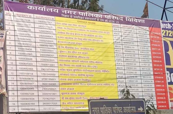विदिशा नगरपालिका ने अपने बकायादारों की सूची अब सार्वजनिक करना शुरू कर दिया है। सबसे पहले शहर के टॉप 20...
