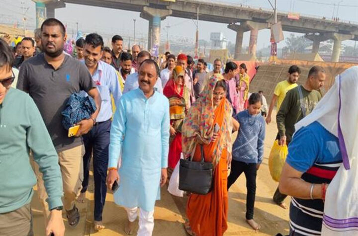 मंत्री राकेश शुक्ला ने रविवार को सपरिवार प्रयागराज के संगम में कुंभ स्नान किया बिना वीआईपी प्रोटोकॉल के किया कुंभ...