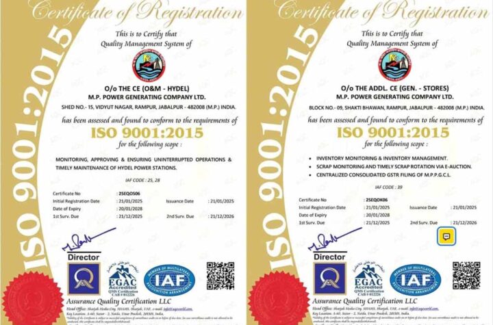 भोपाल मध्यप्रदेश पॉवर जनरेटिंग कंपनी के मुख्यालय जबलपुर के दो कार्यालयों मुख्य अभियंता उत्पादन भंडार और मुख्य अभियंता संचालन संधारण-जल...