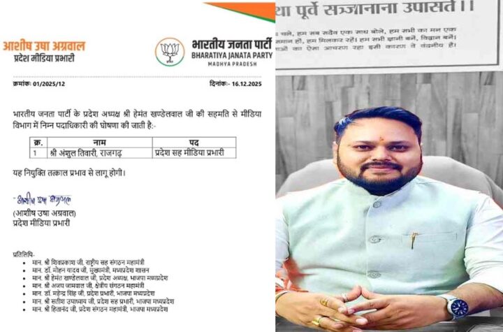 भोपाल मध्य प्रदेश बीजेपी ने एक बड़ी नियुक्ति कर दी है। प्रदेश बीजेपी अध्यक्ष हेमंत खंडेलवाल की सहमति के बाद ...