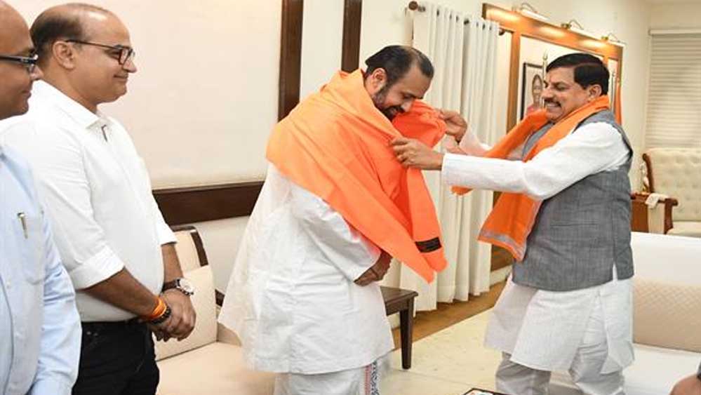 मुख्यमंत्री डॉ. मोहन यादव से पुष्टिमार्गीय प्रधान पीठ श्रीनाथजी मंदिर नाथद्वारा के गोस्वामी तिलकायत चिरंजीवी 105 विशाल बावा साहब ने मुख्यमंत्री निवास में सौजन्य भेंट की। मुख्यमंत्री डॉ. यादव ने गोस्वामी विशाल बावा साहब का शॉल व श्रीफल भेंट कर स्वागत किया। साथ ही प्रदेश में संचालित सांस्कृतिक-आध्यात्मिक और धार्मिक गतिविधियों के संबंध में अवगत कराया। मुख्यमंत्री डॉ. यादव को गोस्वामी जी ने अंगवस्त्रम तथा श्रीनाथजी मंदिर नाथद्वारा का प्रसाद भेंट किया।