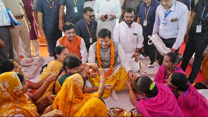 मुख्यमंत्री डॉ. यादव शनिवार को आगर मालवा जिले के बाबा बैजनाथ महादेव धाम में श्रावण पर्व के अवसर पर आयोजित भव्य रक्षाबंधन कार्यक्रम में बोल रहे थे। इस अवसर पर उन्होंने बहिनों से राखी बंधवाई और उन्हें उपहार दिये। कार्यक्रम में आगर-मालवा विधायक माधौसिंह गेहलोत, शाजापुर विधायक अरूण भीमावद, ओम मालवीय सहित स्थानीय जनप्रतिनिधि तथा बड़ी संख्या में जिले के स्व-सहायता समूहों, स्कूल की बेटियां-बहनें भी उपस्थित थीं।
