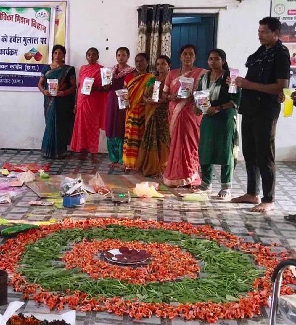प्रदेश के रायपुर, कबीरधाम, गरियाबंद, जांजगीर-चांपा, नारायणपुर और कांकेर सहित अनेक जिलों में स्व-सहायता समूह हर्बल गुलाल का उत्पादन कर रहे हैं। कई समूह मंदिरों में अर्पित फूलों को एकत्र कर सुगंधित गुलाल बना रहे हैं। अबुझमाड़ जैसे आदिवासी क्षेत्रों में महिलाओं ने इसे अपनी पहचान बना ली है। बिहान योजना के तहत महिलाएं सरस मेला एवं क्षेत्रीय मेलों में स्टॉल लगाकर उत्पादों की बिक्री कर रही हैं। इससे उन्हें 40 से 60 हजार रुपये तक का सीधा लाभ मिल रहा है। कई महिलाएं ‘लखपति दीदी’ बनकर आत्मनिर्भरता की नई मिसाल गढ़ रही हैं।