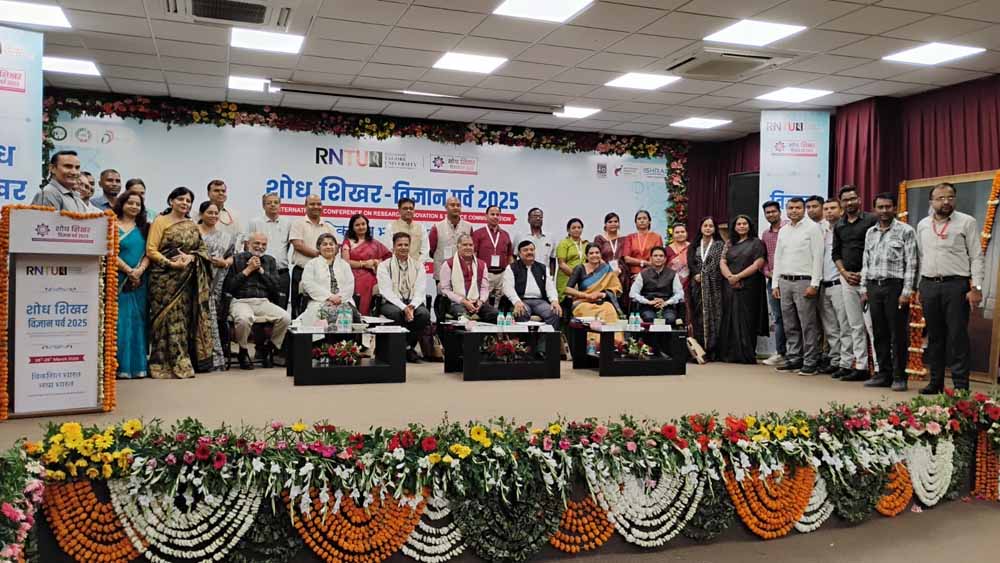 शोध एवं अनुसंधान पर आधारित दो दिवसीय कार्यक्रम “शोध शिखर विज्ञान पर्व 2025” का रबीन्द्रनाथ टैगोर विश्वविद्यालय (आरएनटीयू) परिसर में समापन सत्र का आयोजन किया गया। इसमें बतौर मुख्य अतिथि मप्र निजी विश्वविद्यालय विनियामक आयोग के अध्यक्ष प्रो. भरत शरण सिंह एवं विशिष्ट अतिथि के रूप में डॉ. मनोज कुमार पटेरिया, पूर्व अध्यक्ष, CSIR–NIScPR एवं डॉ. नम्रता पाठक, वैज्ञानिक-जी, एनजीपी और एसएमपी, विज्ञान और प्रौद्योगिकी मंत्रालय (DST) उपस्थित रहे। अन्य अतिथियों में स्कोप ग्लोबल स्किल्स यूनिवर्सिटी के कुलाधिपति डॉ. सिद्धार्थ चतुर्वेदी, आरएनटीयू की प्रो. चांसलर डॉ. अदिति चतुर्वेदी वत्स, कुलगुरू आरपी दुबे और सीवीआरयू खंडवा के कुलगुरू डॉ. अरूण जोशी उपस्थित रहे।