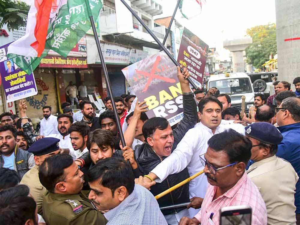 राष्ट्रीय स्वयंसेवक संघ के प्रमुख मोहन भागवत के राम मंदिर निर्माण को असली आजादी बताए जाने पर कांग्रेस ने पिछले दिनों आंदोलन किया था। आरएसएस के नागपुर स्थित मुख्यालय तक मार्च निकाला गया था, लेकिन इस आयोजन में कांग्रेस के ही तमाम कार्यकर्ता शामिल नहीं हुए थे। अब कांग्रेस ने ऐसे लोगों पर ऐक्शन लिया है और कुल 60 कार्यकर्ताओं को पदों से हटा दिया गया है। कांग्रेस ने जिन नेताओं के खिलाफ ऐक्शन लिया है, वे यूथ विंग के सदस्य हैं या पदाधिकारी हैं। कांग्रेस ने जिन लोगों को हटाया है, उनमें कुछ वाइस प्रेसिडेंट, 8 महासचिव, 20 सचिव और कुछ जिलाध्यक्ष शामिल हैं। नेशनल यूथ कांग्रेस की ओर से 19 जनवरी को मार्च का आयोजन किया था, जिसका नेतृत्व राष्ट्रीय चीफ उदय भानु ने किया था।
