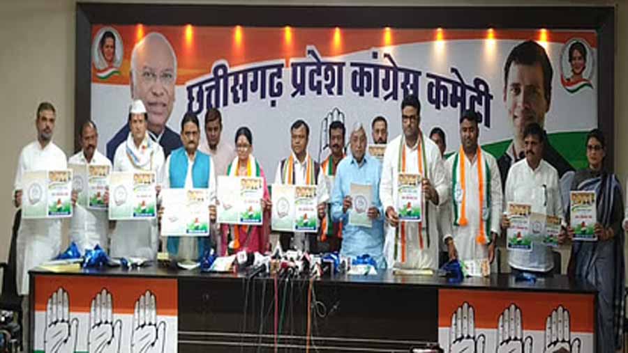 नगरीय निकाय चुनाव के लिए कांग्रेस ने आज राजीव भवन रायपुर में घोषणा पत्र जारी किया, जिसका नाम “जन घोषणा पत्र” दिया गया है. कार्यक्रम में प्रदेश अध्यक्ष दीपक बैज, घोषणा पत्र समिति के अध्यक्ष सत्यनारायण शर्मा, महापौर प्रत्याशी दीप्ति दुबे, पूर्व विधायक विकास उपाध्याय, प्रमोद दुबे, युवा कांग्रेस के प्रदेश अध्यक्ष आकाश शर्मा सहित कई वरिष्ठ नेता मौजूद रहेंगे.