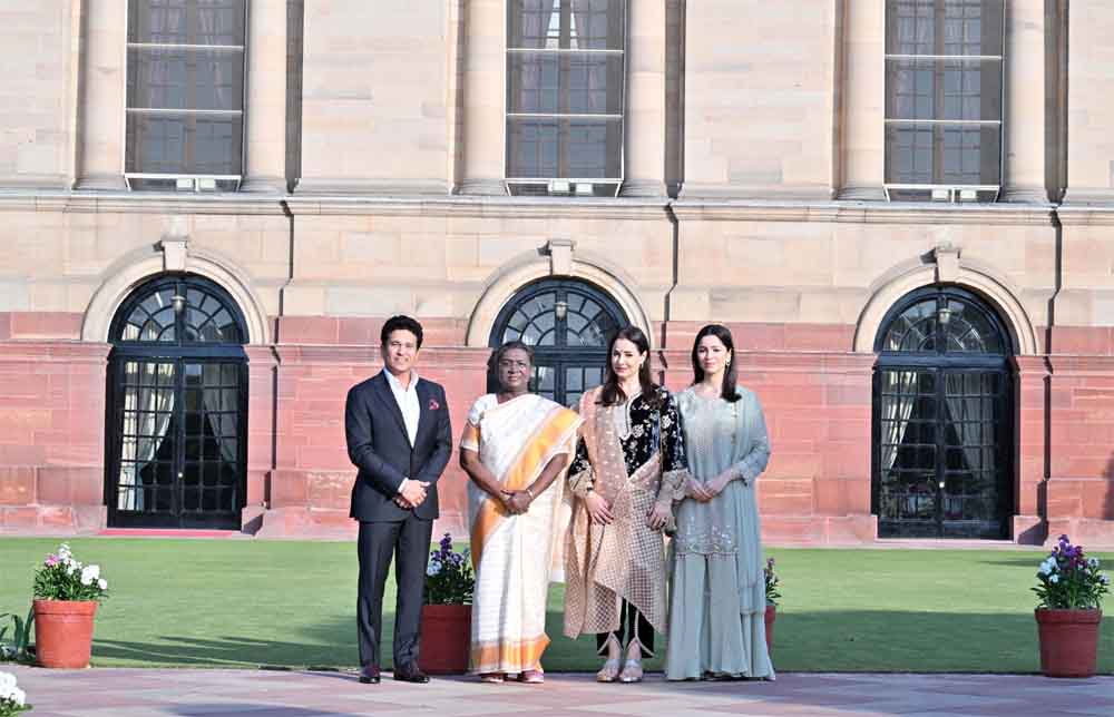 क्रिकेट के दिग्गज सचिन तेंदुलकर ने राष्ट्रपति भवन की अपनी यात्रा के दौरान राष्ट्रपति द्रौपदी मुर्मू के "गर्मजोशी और आतिथ्य" के लिए उनका आभार व्यक्त किया और कहा कि हर पल बेहद निजी लगा। तेंदुलकर ने अपने परिवार के सदस्यों के साथ गुरुवार को राष्ट्रपति भवन में राष्ट्रपति मुर्मू से मुलाकात की। राष्ट्रपति और तेंदुलकर ने अमृत उद्यान का भी दौरा किया। "राष्ट्रपति भवन के ऐतिहासिक अतिथि विंग में अपने परिवार के साथ रहना एक सम्मान की बात है, जिसे हम हमेशा याद रखेंगे।''