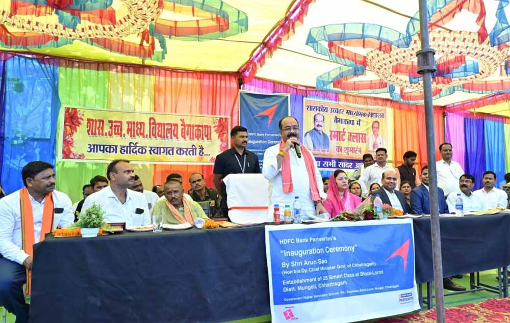 उप मुख्यमंत्री साव ने बैगाकापा उच्चतर माध्यमिक विद्यालय में आयोजित कार्यक्रम को संबोधित करते हुए कहा कि बच्चों को अच्छी शिक्षा प्रदान करने के लिए स्कूलों में डिजिटल तकनीकों का उपयोग बढ़ाया जा रहा है। एचडीएफसी बैंक और एआरओ फाउंडेशन के सहयोग से स्मार्ट क्लास-रूम की यह पहल विद्यार्थियों के लिए काफी उपयोगी होगी। उन्होंने दोनों संस्थाओं को इसके लिए धन्यवाद दिया। लोरमी नगर पालिका के अध्यक्ष सुजीत वर्मा, मुंगेली जिला पंचायत की सदस्य अनिता साहू और लोरमी जनपद पंचायत की अध्यक्ष वर्षा विक्रम सिंह ठाकुर सहित अनेक जनप्रतिनिधि एवं गणमान्य नागरिक कार्यक्रम में बड़ी संख्या में मौजूद थे।