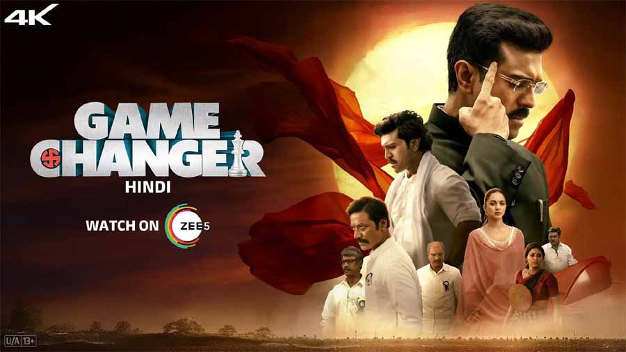 राजनीतिक एक्शन थ्रिलर गेम चेंजर का हिंदी वर्ल्ड डिजिटल प्रीमियर जी5 पर आज किया गया। तमिल सिनेमा के प्रसिद्ध निर्देशक शंकर निर्देशित गेमचेंजर में राम चरण ने आईएएस अधिकारी राम नंदन और उनके पिता अप्पन्ना के रूप में दोहरी भूमिका निभायी है। इस फिल्म में कियारा आडवाणी राम की प्रेमिका के रूप में है। साथ ही अंजलि, एसजे सूर्या, प्रकाश राज और कई अन्य कलाकार भी अहम भूमिकाओं में हैं। इस फिल्म में एसजे सूर्या मुख्य खलनायक की भूमिका में हैं।