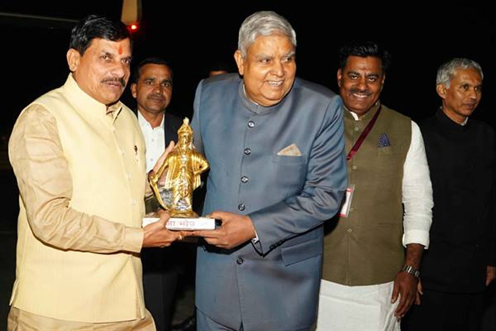 उप राष्ट्रपति जगदीप धनकड़ को राज्यपाल मंगुभाई पटेल औरमुख्यमंत्री डॉ. मोहन यादव ने शुक्रवार की रात्रि पुराने एयरपोर्ट पर उप राष्ट्रपति जगदीप धनखड़ को प्रतीक चिन्ह भेंटकर दिल्ली के लिए विदाई दी। मुख्यमंत्री डॉ. यादव ने उप राष्ट्रपति के भोपाल आगमन पर आभार माना।