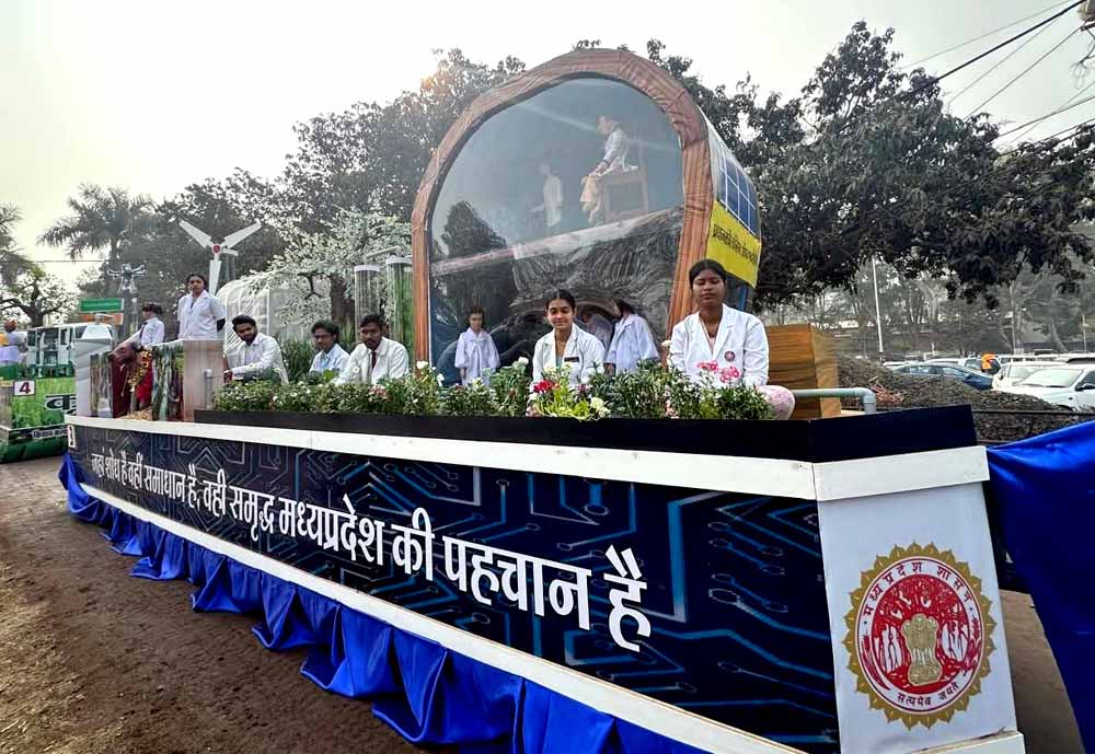 ज्ञातव्य है कि राज्य स्तरीय समारोह में प्रस्तुत 23 विभागों की झांकियों में, उच्च शिक्षा विभाग की झांकी ने राज्य स्तर पर द्वितीय स्थान प्राप्त किया। उच्च शिक्षा विभाग की यह झांकी प्रदेश को अनुसंधान, नवाचार और कृत्रिम बुद्धिमता आधारित ज्ञान-व्यवस्था के अग्रणी राज्य के रूप में प्रस्तुत कर रही थी। इसका मूल भाव यह प्रतिपादित करता है कि उच्च शिक्षा में शोध, तकनीकी नवाचार और वैज्ञानिक दृष्टिकोण ही समृद्ध, आत्मनिर्भर और सतत विकासशील मध्यप्रदेश की सुदृढ़ आधारशिला हैं। प्रदेश की प्रगति का मार्ग ज्ञान-सृजन, नवाचार और अनुसंधान आधारित समाधानों से होकर गुजरता है, यही इस झांकी का केन्द्रीय संदेश रहा है। झांकी के अग्र भाग में रिसर्च एवं एआई इनोवेशन जोन का सजीव चित्रण किया गया, जहाँ अत्याधुनिक कृत्रिम बुद्धिमता, रोबोटिक्स, डेटा एनालिक्स और डिजीटल डैशबोर्ड के माध्यम से विद्यार्थी एवं शोधकर्ता नवाचार करते हुए दिखाई दे रहे थे। यह दृश्य, उच्च शिक्षा संस्थानों में विकसित होती अनुसंधान संस्कृति, स्टार्टअप इकोसिस्टम और तकनीक आधारित समाधान निर्माण के प्रति राज्य की प्रतिबद्धता को प्रभावी रूप से रेखांकित करता दिखाई दिया।