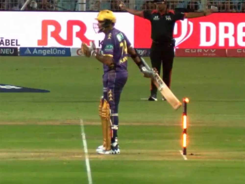आमतौर पर देखा जाता है कि बल्लेबाजी करते समय बल्लेबाज का बल्ला, कोई क्रिकेटिंग गियर या शरीर का कोई अंग स्टंप्स पर लग जाता है तो बल्लेबाज को हिट विकेट आउट दिया जाता है। हालांकि, इस केस में ऐसा नहीं हुआ। केकेआर की पारी के 8वें ओवर की चौथी गेंद सुनील नरेन के ऊपर से चली गई। सुनील नरेन ने गेंद को खेलने की कोशिश की, लेकिन गेंद को ऊपर से जाते देख उन्होंने अपना बल्ला नीचे कर लिया। इस दौरान उनका बल्ला काफी पीछे चला गया स्टंप्स पर लग गया। ऐसे में बल्लेबाज को हिट विकेट आउट दिया जाना चाहिए था। हालांकि, यहां नियम अलग लागू हुआ।