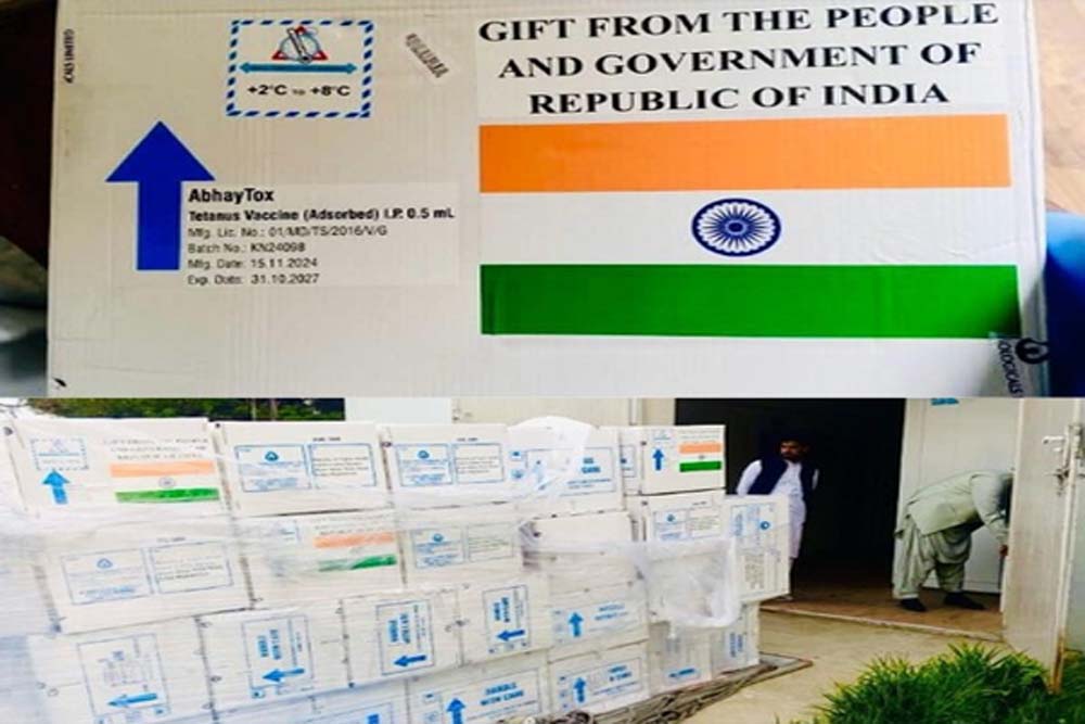 भारत ने अफगानिस्तान को 4.8 टन टीके दान किए। इन टीकों में रेबीज, टेटनस, हेपेटाइटिस बी और इन्फ्लूएंजा से लड़ने के लिए टीके शामिल हैं। अफगानिस्तान के सार्वजनिक स्वास्थ्य मंत्रालय ने बुधवार को, इस मदद के लिए भारत का आभार व्यक्त किया। मंत्रालय के बयान में कहा गया, "अफगानिस्तान के सार्वजनिक स्वास्थ्य मंत्रालय को रेबीज, टेटनस, हेपेटाइटिस बी और इन्फ्लूएंजा से निपटने में मदद करने के लिए भारत से टीकों की एक महत्वपूर्ण खेप मिली है।"