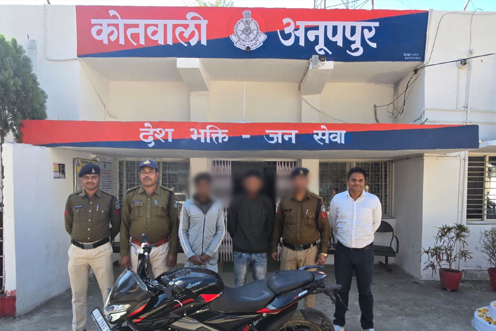 पुलिस अधीक्षक अनूपपुर श्री मोती उर रहमान जी के निर्देशन में कोतवाली अनूपपुर पुलिस द्वारा रात्रि में बंद घरों में ताला तोड़कर चोरी करने वाले अंतरराज्यीय चोर गिरोह का पर्दाफाश किया है , पुलिस द्वारा गिरफ्तार मनेन्द्रगढ़ (छत्तीसगढ़ ) के रहने वाले दो आरोपियों से चोरी किए गए सोने चांदी के जेवर, चार मोबाइल हैंडसेट, नगदी रकम एवं वारदात में प्रयुक्त बजाज पल्सर मोटरसाइकिलकुल कीमती 250000 रुपए जप्त की है ।