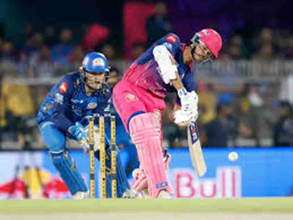 राजस्थान रॉयल्स (आरआर) ने बारिश से प्रभावित इंडियन प्रीमियर लीग (आईपीएल) के 13वें मुकाबले में मुंबई इंडियंस (एमआई) के खिलाफ 27 रन से जीत दर्ज की। इसी के साथ आरआर ने इस सीजन में जीत की हैट्रिक लगा दी है। यह टीम पॉइंट्स टेबल में शीर्ष पर पहुंच गई है। वहीं, सातवें पायदान पर मौजूद एमआई को दूसरे मुकाबले में हार का सामना करना पड़ा है। बारिश के चलते मैच की पहली गेंद रात 10 बजकर 10 मिनट पर