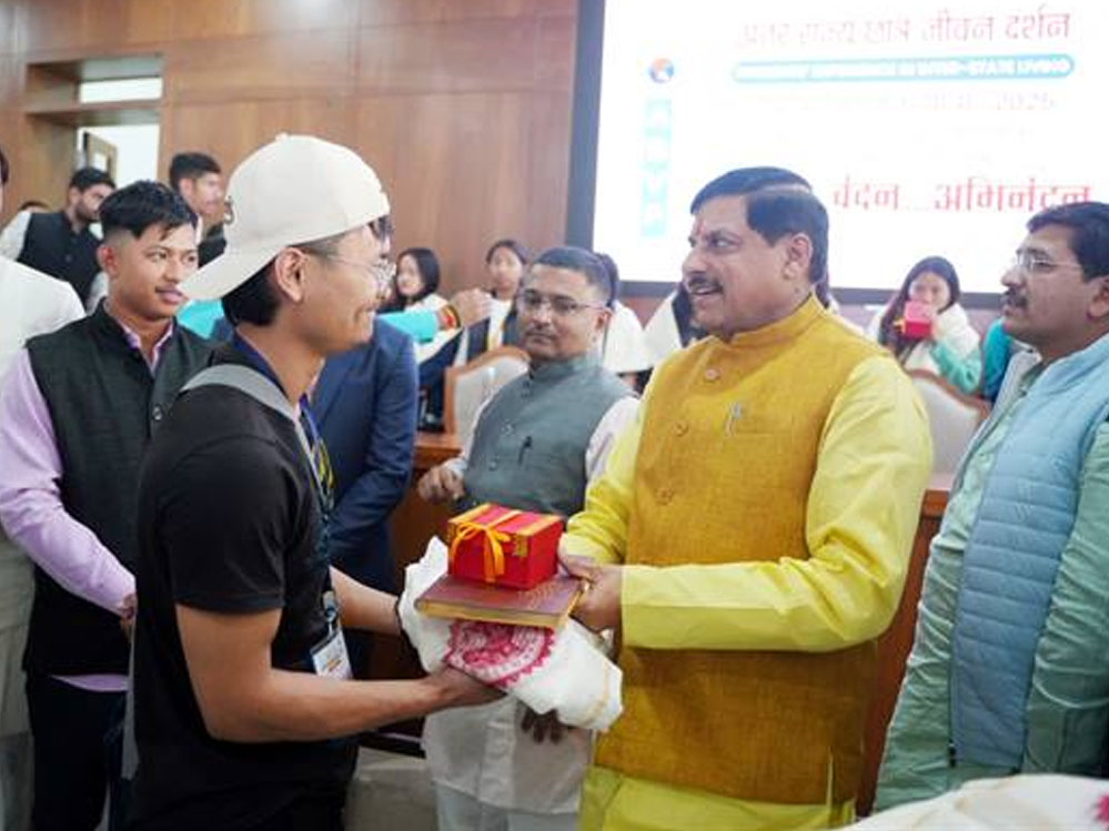 मुख्यमंत्री डॉ. यादव ने सभी विद्यार्थियों एवं समन्वयकों को स्मृति-चिह्न के रूप में शॉल, मध्यप्रदेश शासन की डायरी, कैलेंडर और एक विशेष उपहार भेंट किया। कार्यक्रम में शिवम जाट, चेतस सुखाड़िया, रोहित दुबे, दीपक पालीवाल, कमन सिबोह, राहुल मोग सहित अन्य विद्यार्थी एवं नागरिक उपस्थित थे।