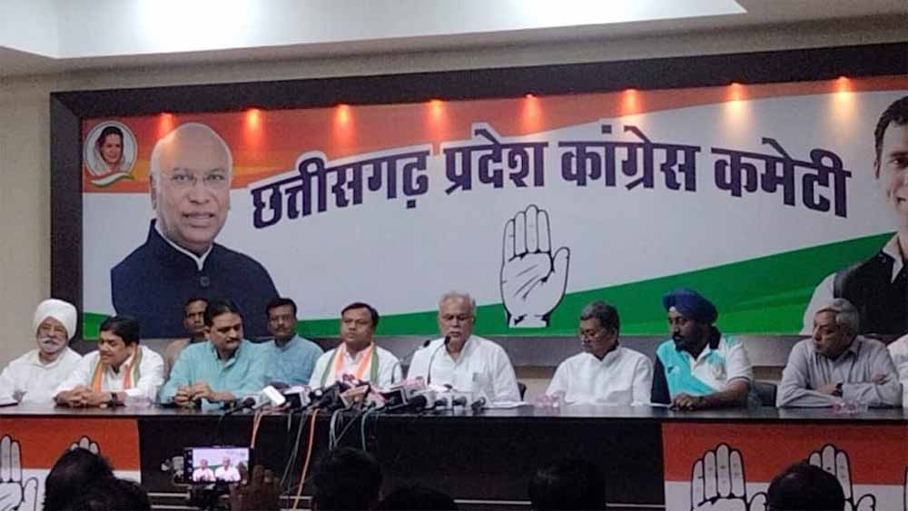 महादेव सट्टा एप मामले में सीबीआई की छापेमारी के खिलाफ कांग्रेस ने मोर्चा खोल दिया है. एक तरफ जहां पूरे प्रदेश में धरना-प्रदर्शन और पुतला दहन किया गया, वहीं दूसरी ओर पूर्व मुख्यमंत्री भूपेश बघेल ने पीसीसी चीफ दीपक बैज, नेता प्रतिपक्ष चरणदास महंत, महामंत्री मल्कित सिंह गैदू, पूर्व मंत्री शिव डहरिया, पूर्व विधायक सत्य नारायण शर्मा, पूर्व विधायक विकास उपाध्याय के साथ प्रेस वार्ता के जरिए अपना पक्ष रखा.