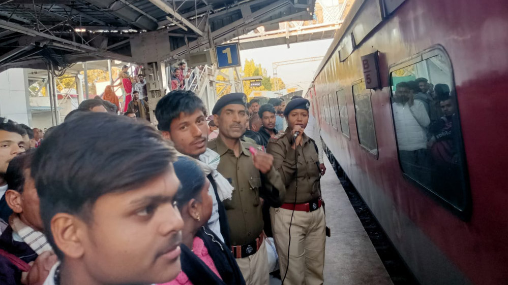 • रेल सुरक्षा बल (RPF) के जवान चौबीसों घंटे सतर्क रहते हुए संदिग्ध गतिविधियों पर नजर रख रहे हैं।