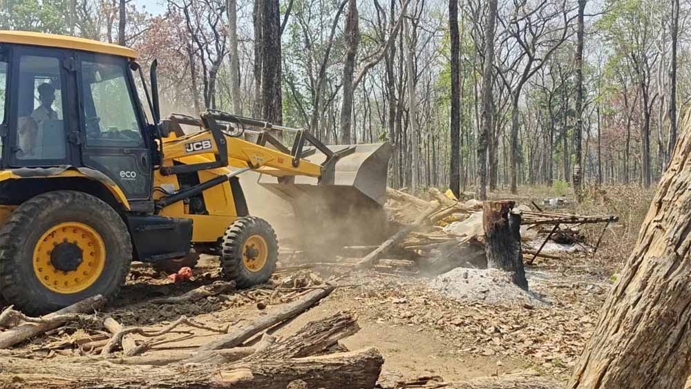 नोटिस के बाद भी जमीन खाली नहीं करने पर आज वन विभाग और राजस्व विभाग की संयुक्त टीम मौके पर पहुंची और बुलडोजर की मदद से अवैध निर्माणों को हटाने की कार्रवाई शुरू की। प्रशासन की इस सख्त कार्रवाई के बाद अतिक्रमण कारियों में अफरा-तफरी का माहौल है। वहीं मौके पर भारी पुलिस बल भी तैनात किया गया है, ताकि किसी भी तरह की स्थिति को नियंत्रित किया जा सके। फिलहाल प्रशासन की कार्रवाई जारी है।