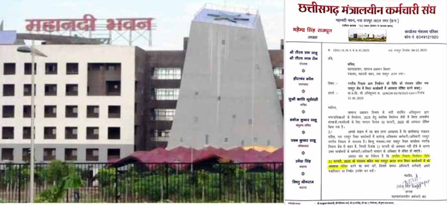 कर्मचारी संघ के अध्यक्ष महेंद्र सिंह राजपूत ने कहा, रायपुर क्षेत्र में 11 फरवरी को मतदान होना है. इस दिन नगरीय निकाय क्षेत्रों में छुट्टी घोषित है. मंत्रालय और अन्य नवा रायपुर स्थित कार्यालय नगरीय निकाय क्षेत्र से बाहर है. मंत्रालय एवं अन्य कार्यालयों में कार्यरत अधिकारी कर्मचारी नगरीय निकाय क्षेत्र के निवासी मतदाता हैं, इसलिए मतदान के दिन मंत्रालय सहित नवा रायपुर अटल नगर के कार्यालयों में भी अवकाश घोषित किया जाए. छुट्टी होने से अधिकारी-कर्मचारी अपने मताधिकार का उपयोग कर सकेंगे.