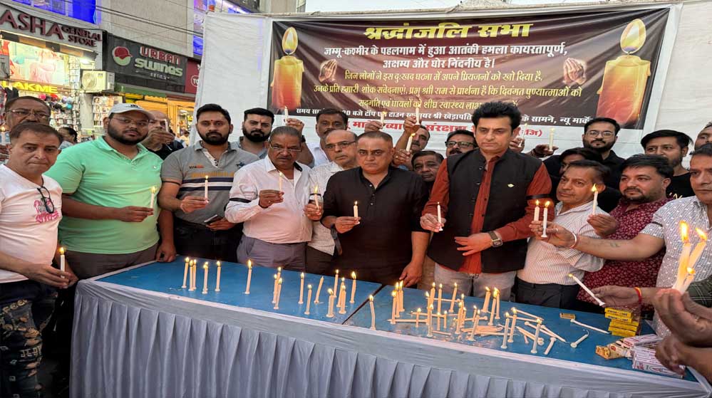 संरक्षण समिति(रजि)" के बैनर तले टॉप एन टाउन चौराहे पर न्यूमार्केट के व्यापारियों ने श्रद्धांजलि सभा आयोजित की, साथ ही साथ व्यापारियों ने भारत सरकार से आतंकवाद पर निर्णायक प्रहार करने की पुरजोर मांग की ।