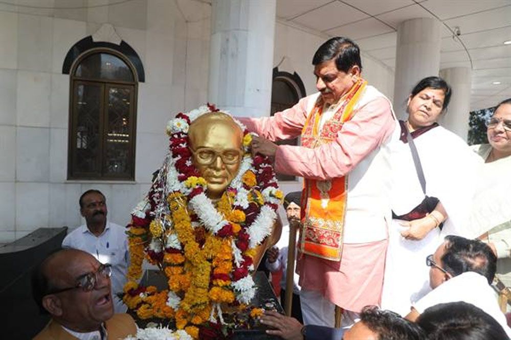 मुख्यमंत्री डॉ. मोहन यादव गणतंत्र दिवस की 76वीं वर्षगांठ पर डॉ. भीमराव अंबेडकर की जन्मस्थली डॉ. अम्बेडकर नगर (महू) पहुंचे। यहां उन्होंने संविधान निर्माता (बाबा साहेब) डॉ. अंबेडकर की प्रतिमा पर माल्यार्पण किया और श्रद्धासुमन अर्पित किए।