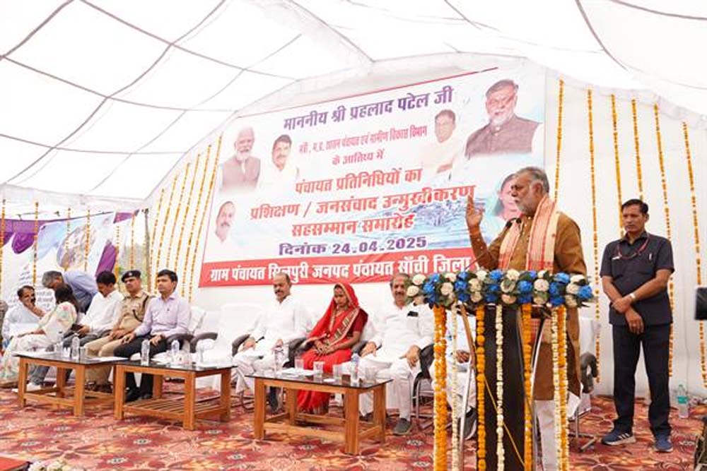 पंचायत एवं ग्रामीण विकास, श्रम मंत्री श्री प्रहलाद सिंह पटेल ने गुरुवार को रायसेन जिले की सांची जनपद पंचायत के ग्राम सिलपुरी में आयोजित पंचायत प्रतिनिधियों का प्रशिक्षण/जनसंवाद उन्मुखीकरण कार्यक्रम सह सम्मान समारोह का कन्या-पूजन और दीप-प्रज्जवलन कर शुभारंभ किया गया। कार्यक्रम में जिला पंचायत अध्यक्ष श्री यशवंत मीणा सहित जनप्रतिनिधि, अधिकारी/कर्मचारी एवं नागरिक उपस्थित थे। मंत्री श्री पटेल ने कहा कि हमारी पंचायत व्यवस्था आत्मनिर्भर व स्वाबलंबी होनी चाहिए। सभी अपने ग्राम को स्वाबलंवी और आत्मनिर्भर बनाने के लिए कार्य करें। उन्होंने पंच-सरपंचों को संबोधित कराते हुए कहा कि ग्राम के विकास के लिए योजना बनाकर काम करें, राशि की कमी नहीं है। ग्राम के विकास के लिए राशि का उपयोग इस प्रकार करें कि ग्राम का विकास हो और ग्रामीणों का भविष्य बेहतर हो।