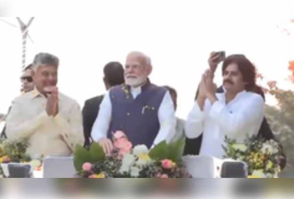पीएम नरेंद्र मोदी बुधवार को आंध्र प्रदेश के विशाखापत्तनम पहुंचे। इस दौरान राज्यपाल एस. अब्दुल नजीर मुख्यमंत्री एन चंद्रबाबू नायडू, उप मुख्यमंत्री पवन कल्याण और अन्य नेताओं ने उनका स्वागत किया। पीएम मोदी ने आंध्र प्रदेश के सीएम एन चंद्रबाबू नायडू और डिप्टी सीएम पवन कल्याण के साथ विशाखापत्तनम में रोड शो में हिस्सा लिया। इस दौरान सड़कों पर जनसैलाब उमड़ा। स्थानीय जनता पीएम मोदी का एक झलक पाने को बेताब नजर आई। बीच-बीच में मोदी-मोदी के नारे भी लगे। पीएम मोदी ने भी लोगों को निराश नहीं किया। उन्होंने हाथ हिलाकर लोगों का अभिवादन स्वीकार किया।