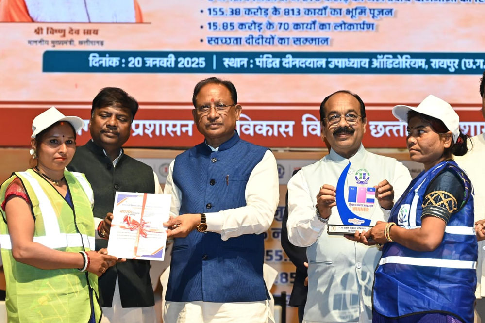 स्वच्छ भारत अभियान में सभी की सहभागिता से नगरीय क्षेत्रों में बड़ी सफलता मिल रही है। स्वच्छता को प्रोत्साहित करने के लिए हम लोग समय-समय पर उत्कृष्ट कार्य करने वालों को सम्मानित भी कर रहे हैं। ऐसे ही मिशन क्लीन सिटी के अंतर्गत क्लीन टायलेट कैम्पेन में उत्कृष्ट कार्य करने वाले प्रदेश के 14 नगरीय निकायों को आज हम लोग सम्मानित कर रहे हैं। अंबिकापुर, छुरा, छुरिया, डोंगरगढ़, कोरबा, महासमुंद, रायपुर, राजनांदगांव, बिलासपुर, मंदिर हसौद और चंदखुरी आदि नगरीय निकायों को आज पुरस्कृत किया जा रहा है। इन्हें सम्मानित करके हम खुद भी गौरवान्वित महसूस कर रहे हैं।