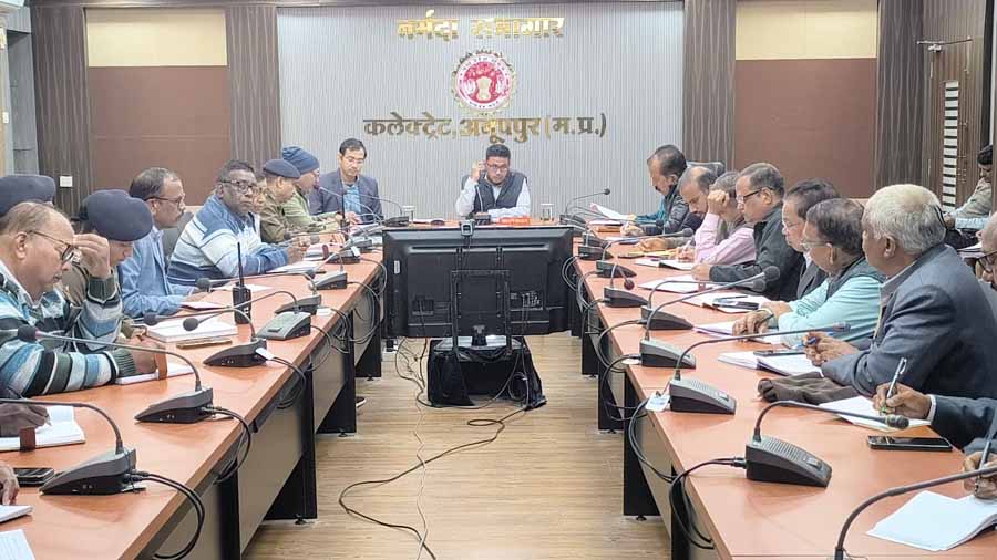 26 जनवरी गणतंत्र दिवस के आयोजन के संबंध में बैठक कलेक्ट्रेट स्थित नर्मदा सभागार में कलेक्टर श्री हर्षल पंचोली की अध्यक्षता में आयोजित की गई। बैठक में गणतंत्र दिवस का आयोजन गरिमामय रूप से सुनिश्चित करने के लिए सभी जरूरी व्यवस्थाएं पुख्ता करने तथा आयोजन संबंधी जिन विभागों को जिम्मेदारी दी गई है, उन्हें निर्धारित समय में तैयारियां पूर्ण करने के निर्देश दिए गए हैं। बैठक में पुलिस अधीक्षक श्री मोती उर रहमान, जिला पंचायत के मुख्य कार्यपालन अधिकारी श्री तन्मय वशिष्ठ शर्मा, अपर कलेक्टर श्री दिलीप कुमार पाण्डेय, अतिरिक्त पुलिस अधीक्षक श्री इसरार मंसूरी, अनुविभागीय राजस्व अधिकारी अनूपपुर श्री सुधाकर सिंह बघेल, अनुविभागीय अधिकारी राजस्व जैतहरी श्रीमती अंजली द्विवेदी सहित सर्व संबंधित विभागों के अधिकारी उपस्थित थे।