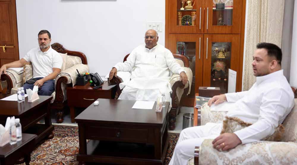 राजद-कांग्रेस की बैठक, तेजस्वी से राहुल गांधी और मल्लिकार्जुन खरगे की कई मुद्दों पर हो रही बातचीत
