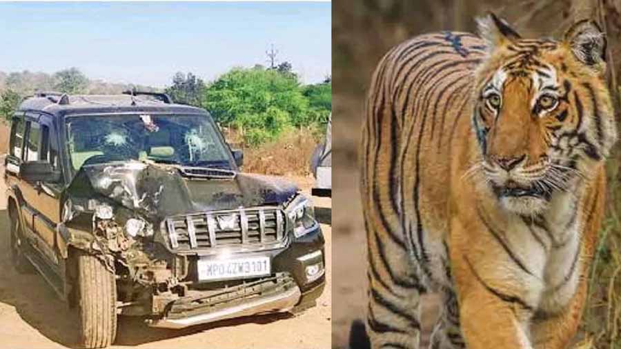 शुक्रवार सुबह जागरण लेक सिटी के पास सड़क पर अचानक दो बाघों के दिखने से एक एसयूवी चालक घबरा गया और गाड़ी अनियंत्रित होकर पेड़ से जा टकराई। प्रत्यक्षदर्शी राजेश जैन ने बताया कि इलाके में एक बड़ा और एक छोटा बाघ घूम रहा है।