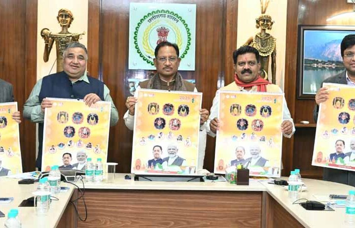 रायपुर मुख्यमंत्री विष्णु देव साय ने राजधानी रायपुर स्थित मुख्यमंत्री निवास कार्यालय में वर्ष 2026 के शासकीय कैलेंडर का विमोचन...