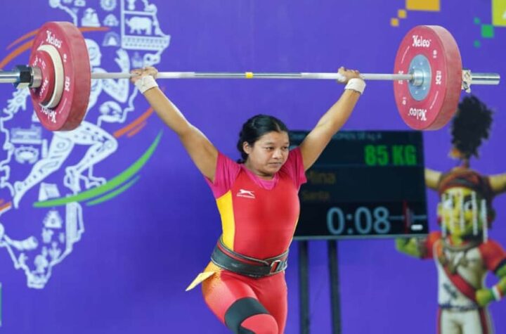 खेलो इंडिया ट्राइबल गेम्स 2026 58 किग्रा महिला वेटलिफ्टिंग में अरुणाचल की अनाई वांग्सू ने जीता स्वर्ण रायपुर रायपुर में...