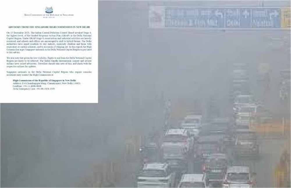 सिंगापुर के उच्चायोग ने दिल्ली और राष्ट्रीय राजधानी क्षेत्र (NCR) में वायु गुणवत्ता के ‘सीवियर प्लस’ स्तर पर पहुंचने के बाद अपने नागरिकों के लिए स्वास्थ्य और सुरक्षा एडवाइजरी जारी की है। यह चेतावनी ऐसे समय आई है जब भारतीय अधिकारियों ने प्रदूषण से निपटने के लिए GRAP स्टेज-4 के तहत सबसे सख्त पाबंदियां लागू कर दी हैं। सिंगापुर हाई कमीशन ने कहा कि दिल्ली-NCR में रह रहे सिंगापुर नागरिक स्थानीय स्वास्थ्य सलाहों और प्रदूषण संबंधी प्रतिबंधों का सख्ती से पालन करें। यह एडवाइजरी 13 दिसंबर को कमीशन फॉर एयर क्वालिटी मैनेजमेंट (CAQM) द्वारा GRAP स्टेज-4 लागू किए जाने के बाद जारी की गई।