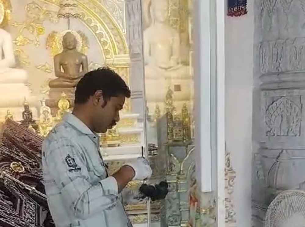 धार जिले के मनावर में चैतन्यधाम स्थित भगवान महावीर दिगंबर जिनालय में रविवार रात अज्ञात चोरों ने धावा बोलकर करीब 20 किलो चांदी के आभूषण और छह महीने से संचित दानपेटी चोरी कर ली। चोरी की कुल अनुमानित राशि करीब 14 लाख रुपये बताई जा रही है। फरियादी राकेश जैन ने पुलिस को दी गई रिपोर्ट में बताया कि मंदिर रोजाना सुबह 5 बजे खोला जाता है और रात 9:30 बजे बंद कर दिया जाता है। पुजारी रत्नेश जैन के बाहर होने के कारण, उनकी पत्नी आरती जैन ने 23 फरवरी की रात 9:30 बजे पूजा-अर्चना के बाद मंदिर के मुख्य द्वार पर ताला लगाकर बंद कर दिया था।