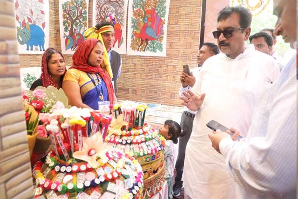 जनजातीय कार्य एवं गैस राहत मंत्री डॉ. कुँवर विजय शाह ने कहा कि जनजातीय शिल्प को बाजार उपलब्ध कराने के लिये संभाग एवं ट्रायबल के 20 जिलों में ट्रायबल मार्ट खोले जायेंगे। उन्होंने कहा कि जनजातीय कलाकारों को उनके उत्पाद का पूरा मूल्य नहीं मिल पाया। सभी शिल्पकारों और कलाकारों को उनके उत्पाद के माध्यम से उचित मूल्य दिलाकर उन्हें आर्थिक एवं सामाजिक रूप से सुदृढ़ और सशक्त बनाया जायेगा। मंत्री डॉ. शाह शुक्रवार को रवीन्द्र भवन के हंसध्वनि सभागार में मुख्यमंत्री डॉ. मोहन यादव की अध्यक्षता में राज्य स्तरीय जनजातीय शिल्पग्राम महोत्सव के उद्घाटन अवसर पर अतिथि कलाकारों को संबोधित कर रहे थे। तीन दिवसीय शिल्प महोत्सव में प्रदेश के जनजातीय कलाकारों द्वारा निर्मित विभिन्न शिल्प कलाओं का प्रदर्शन किया जा रहा है।