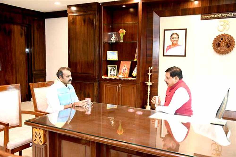 मुख्यमंत्री डॉ. मोहन यादव से केंद्रीय सूचना एवं प्रसारण तथा संसदीय कार्य राज्यमंत्री एल. मुरुगन ने सोमावार को मंत्रालय में सौजन्य भेंट की। मुख्यमंत्री डॉ. यादव ने पुष्प-गुच्छ भेंट कर एवं अंग वस्त्रम ओढ़ाकर केंद्रीय मंत्री मुरुगन का स्वागत किया। मुख्यमंत्री डॉ. यादव और केंद्रीय राज्य मंत्री मुरुगन ने मध्यप्रदेश के विकास से जुड़े विभिन्न विषयों पर गहन चर्चा की।