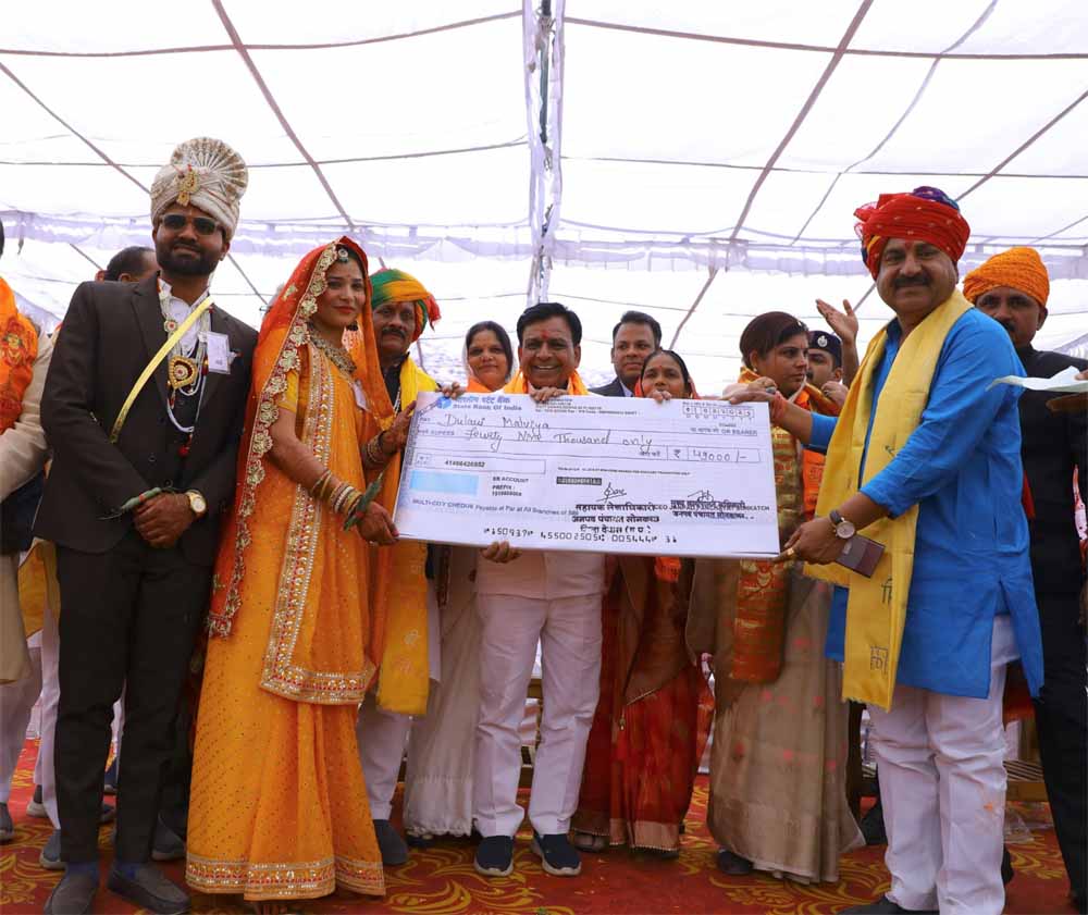 उप मुख्यमंत्री एवं प्रभारी मंत्री श्री देवड़ा ने कहा कि प्रधानमंत्री श्री नरेन्द्र मोदी ने सभी वर्गों के लिये योजनाएं बनाई है, योजनाओं का लाभ सभी को समान रूप से मिल रहा है। आयुष्मान योजना से सभी को 05 लाख रूपये तक का नि:शुल्क उपचार मिल रहा है। उज्ज्वला योजना से सभी को गैस कनेक्शन दिये गये है। सबके घर नल से जल पहुंचाया जा रहा है। उन्होंने सभी नव विवाहितों को बधाई दी।
